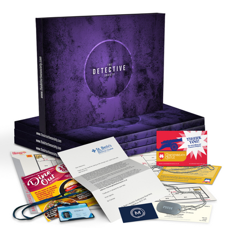 Welcome to the world of mystery games! The Detective Society designs premium puzzle solving experiences, to bring the magic of escape-rooms to your home. We also work hard to bring you experiences from other makers not usually represented here in the UK. You can find our current available products here.